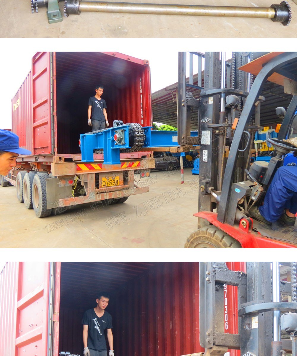 Cette machine est un équipement de convoyage utilisé pour pousser les chariots de séchage dans les installations de séchage du caoutchouc. Elle est principalement composée d’un réducteur cyclo?dal, d’un arbre de transmission, d’un accouplement, de pieds de support, d’une poutre transversale, de pignons et de cha?nes.